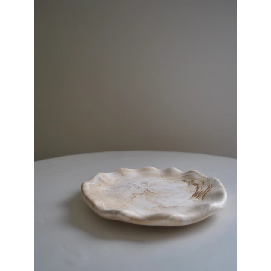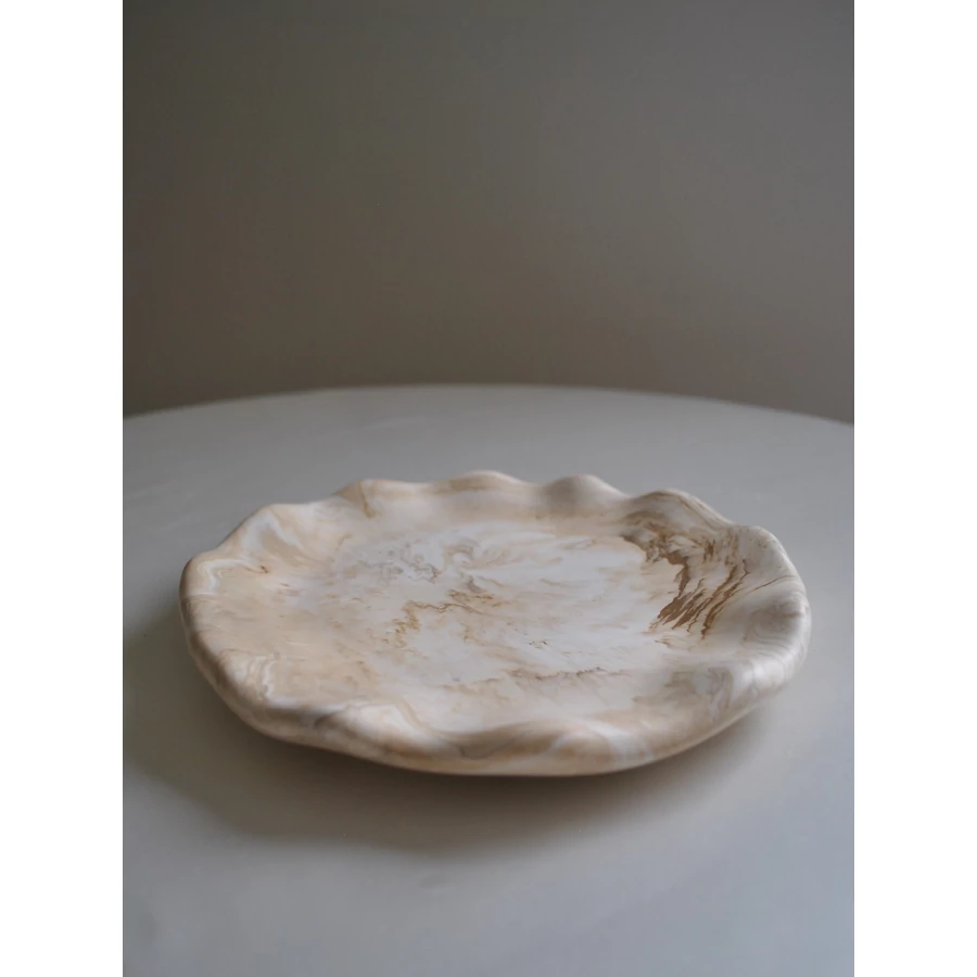 Ez a kézzel készült dekoratív tálca egyszerre praktikus és szép. Használhatod asztaldíszként, vagy kisebb tárgyak - például ékszerek, kulcsok vagy csomagolt/száraz édességek - tárolására. Bármelyik polcnak vagy asztalnak ízléses kiegészítője lesz. Akár gyertya alátétnek is használhatod.