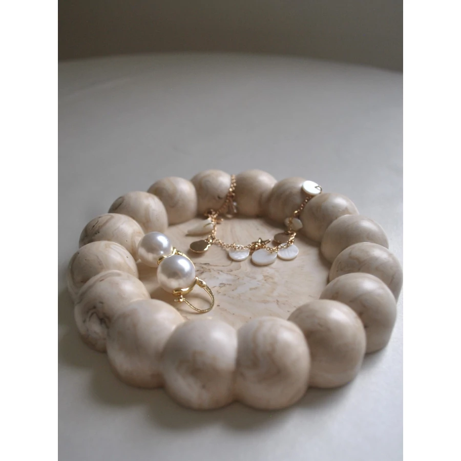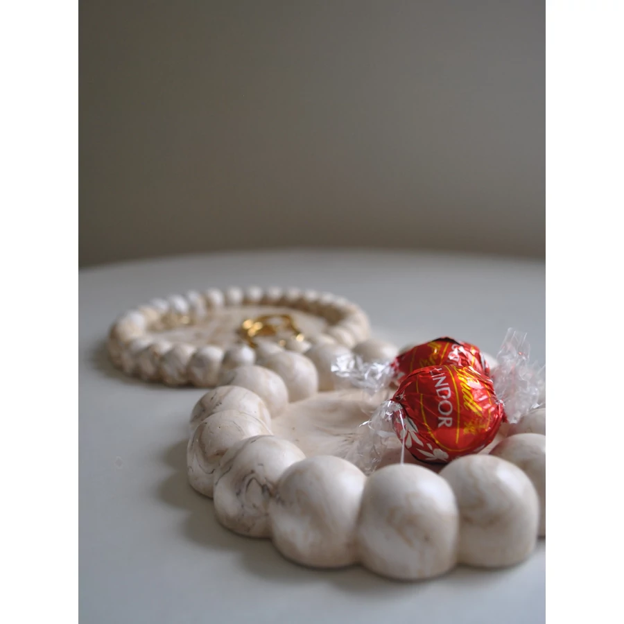 Ez a kézzel készült dekoratív tálca egyszerre praktikus és szép. Használhatod asztaldíszként, vagy kisebb tárgyak - például ékszerek, kulcsok vagy csomagolt/száraz édességek - tárolására. Bármelyik polcnak vagy asztalnak ízléses kiegészítője lesz. Akár gyertya alátétnek is használhatod.
