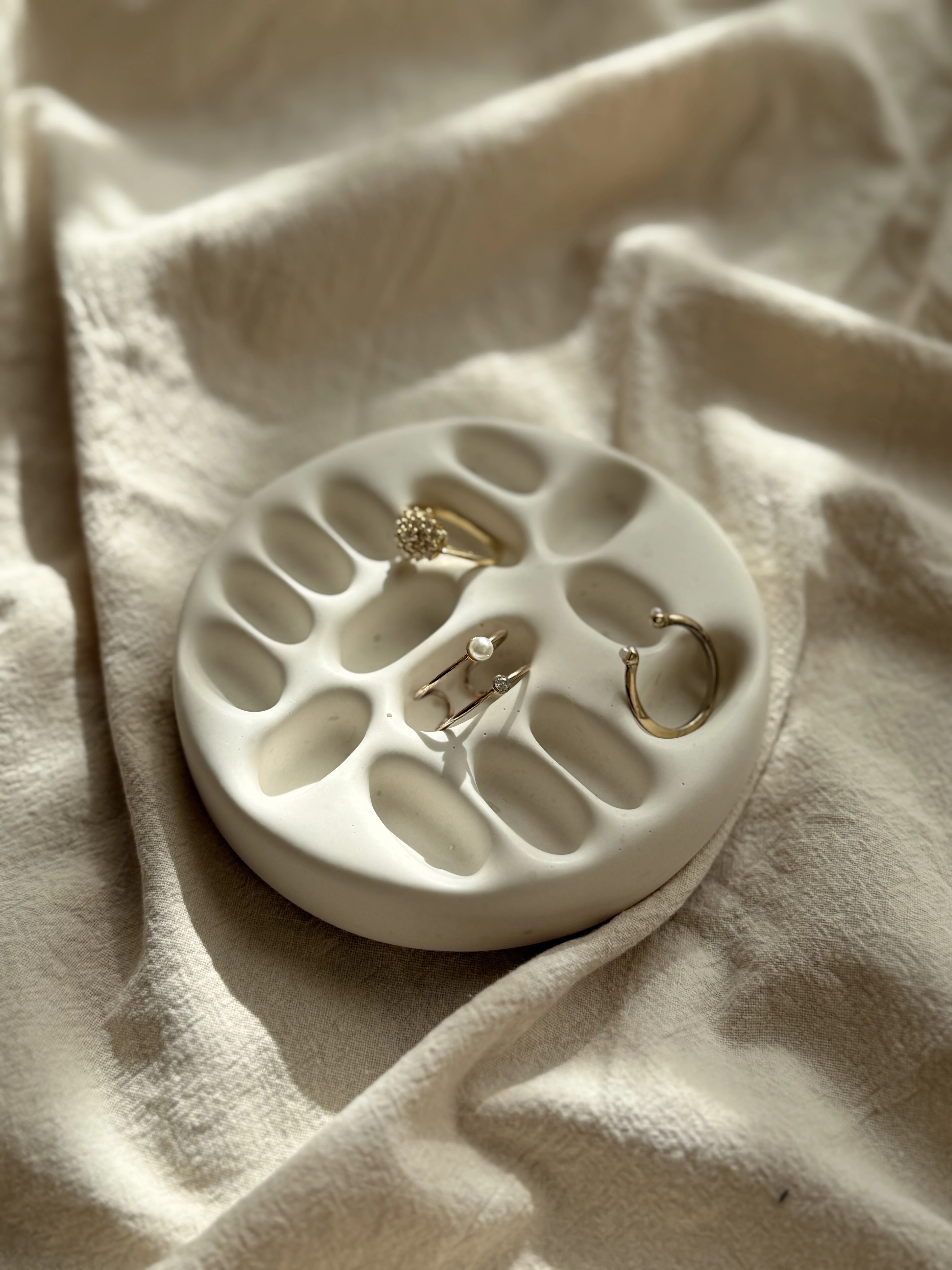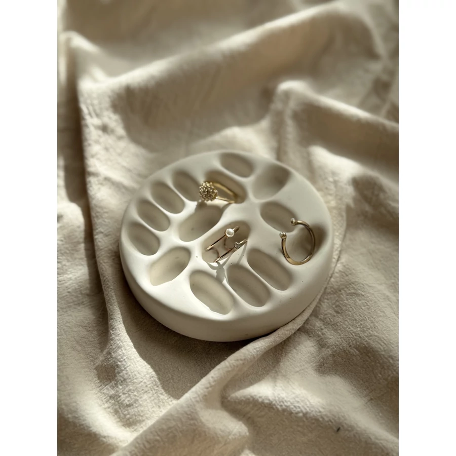 Emeld magasabb szintre az otthon töltött pillanatokat ezzel a kézzel készült dekoratív ékszeres tálcával, amely egyszerre praktikus és esztétikus. Használhatod asztaldíszként, benne kedvenc gyűrűiddel, fülbevalóiddal. Bármelyik polcnak vagy asztalnak ízléses kiegészítője lesz.