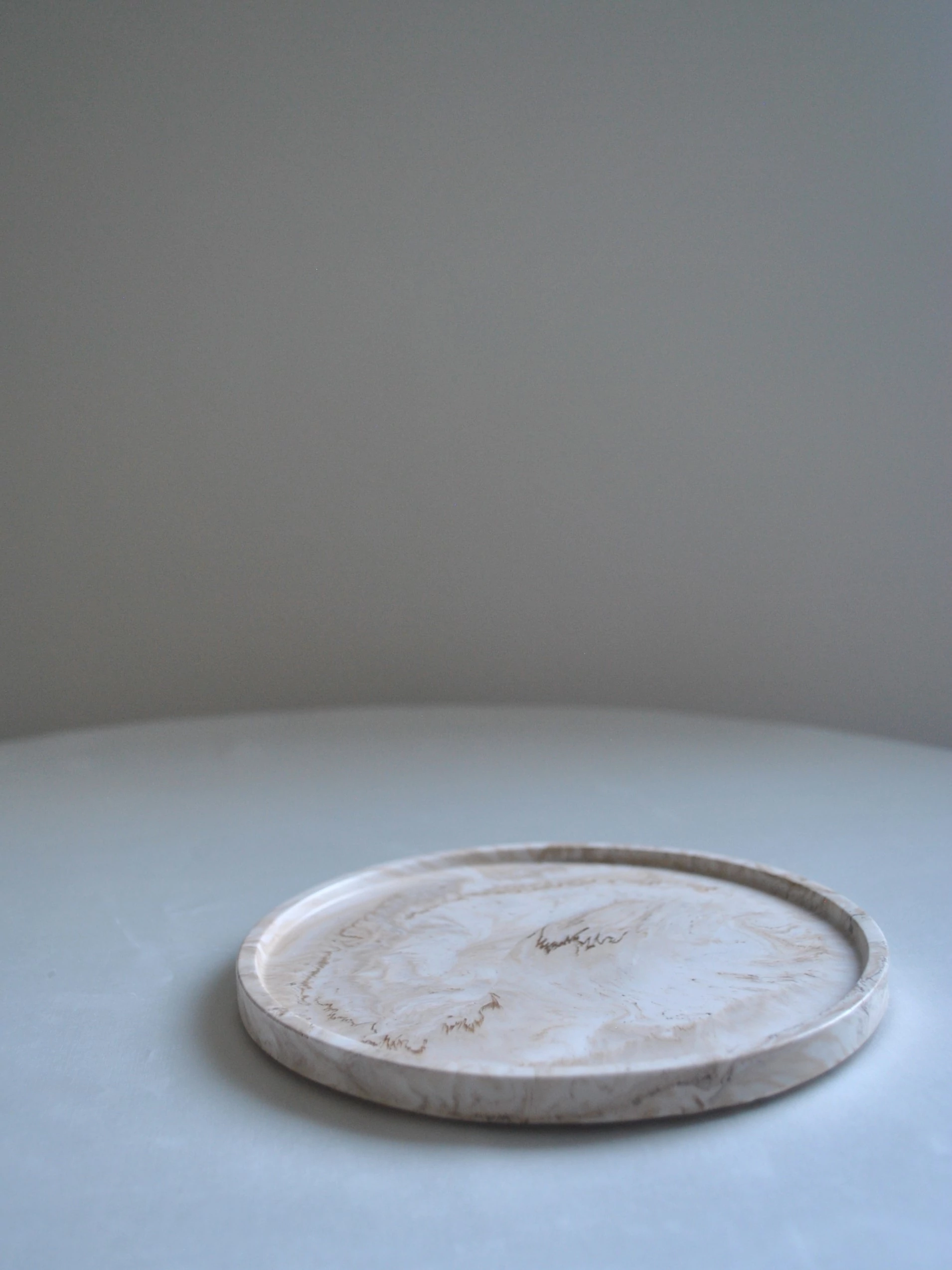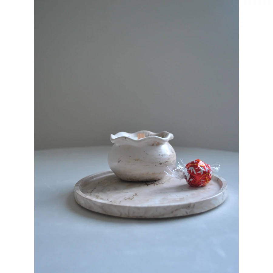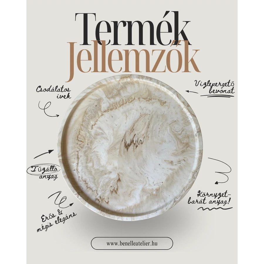 Ez a kézzel készült dekoratív tálca egyszerre praktikus és szép. Használhatod asztaldíszként, vagy kisebb tárgyak - például ékszerek, kulcsok vagy csomagolt/száraz édességek - tárolására. Bármelyik polcnak vagy asztalnak ízléses kiegészítője lesz. Akár gyertya alátétnek is használhatod.